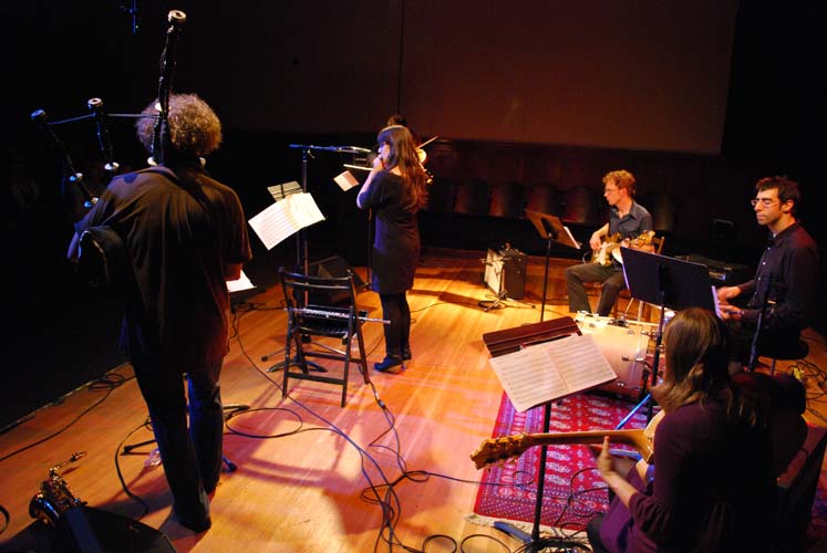 First on stage were New York band Blarvuster. Fronted by accomplished piper Matthew Welch, Blarvuster is a chamber ensemble/rock band hybrid featuring Matthew’s multi-textural compositions and an ever evolving collective of experimental musicians. For tonight’s event, Matthew was joined by a core band of three – Will Northlich-Redmond (electric guitar) Ian Riggs (bass guitar) Brian Chase (drums). The syncopated opening of High Street soon gravitated towards a full-on freeform funk. It may sound and feel reckless, especially among the seasonal diddly overdose in a wintry Glasgow, but the timing is tight, and the craft undeniable as Welch & co. launch into one of his own compositions for pipes.
