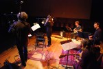Riveting instrumental work: The musicians were consistently magnificent. Ben Holmes on trumpet was especially notable. His stolid presence, which would have, inadvertently, been center stage had there been a conventional stage, grounded the evening. With flawless technique, he employed several mandrels to produce steady, penetrating and remarkably diverse sound. Joe Bergman, Chris Graham, Mark Utley and Joe Tucker on percussion and drums provided rhythmic support and crucial atmospheric detail. Ian Riggs was solid on bass guitar with foreboding but forward moving playing.